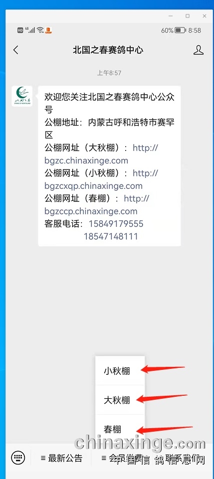 尊敬的北国之春赛鸽中心会员: