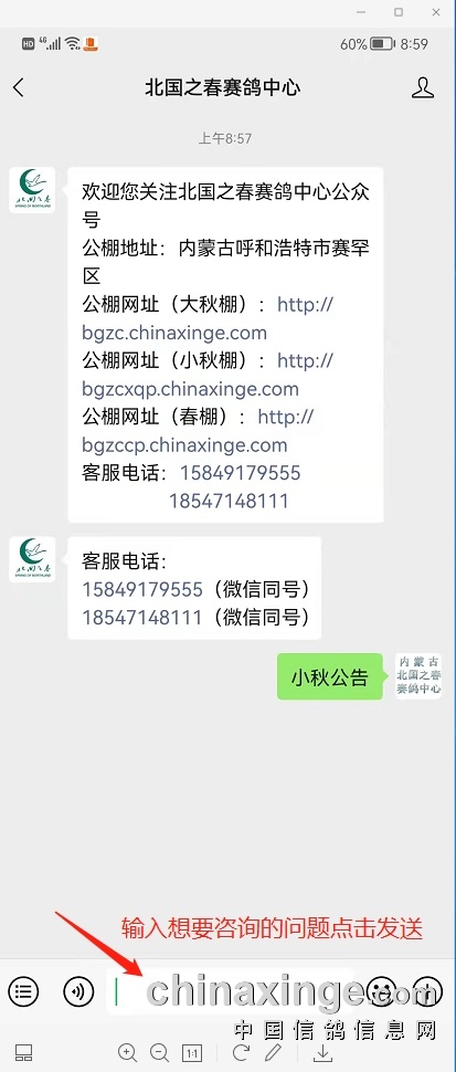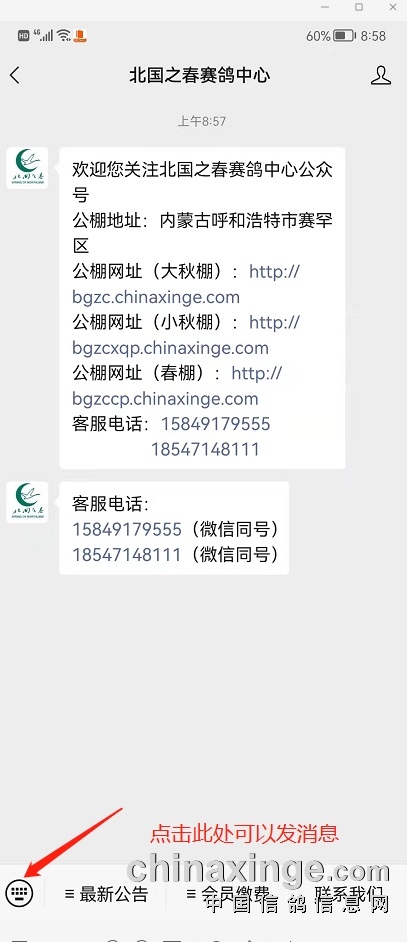 北国之春赛鸽中心微信公众号已经开通!