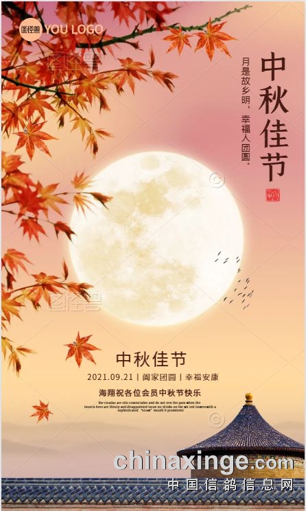 月是中秋分外明,我把问候遥相寄;皓月当空洒清辉,中秋良宵念挚心;广东海翔全体员工祝广大鸽友中秋快乐!阖家团圆!鸽运亨通!在2021年的赛场摘金夺银,喜报连连!