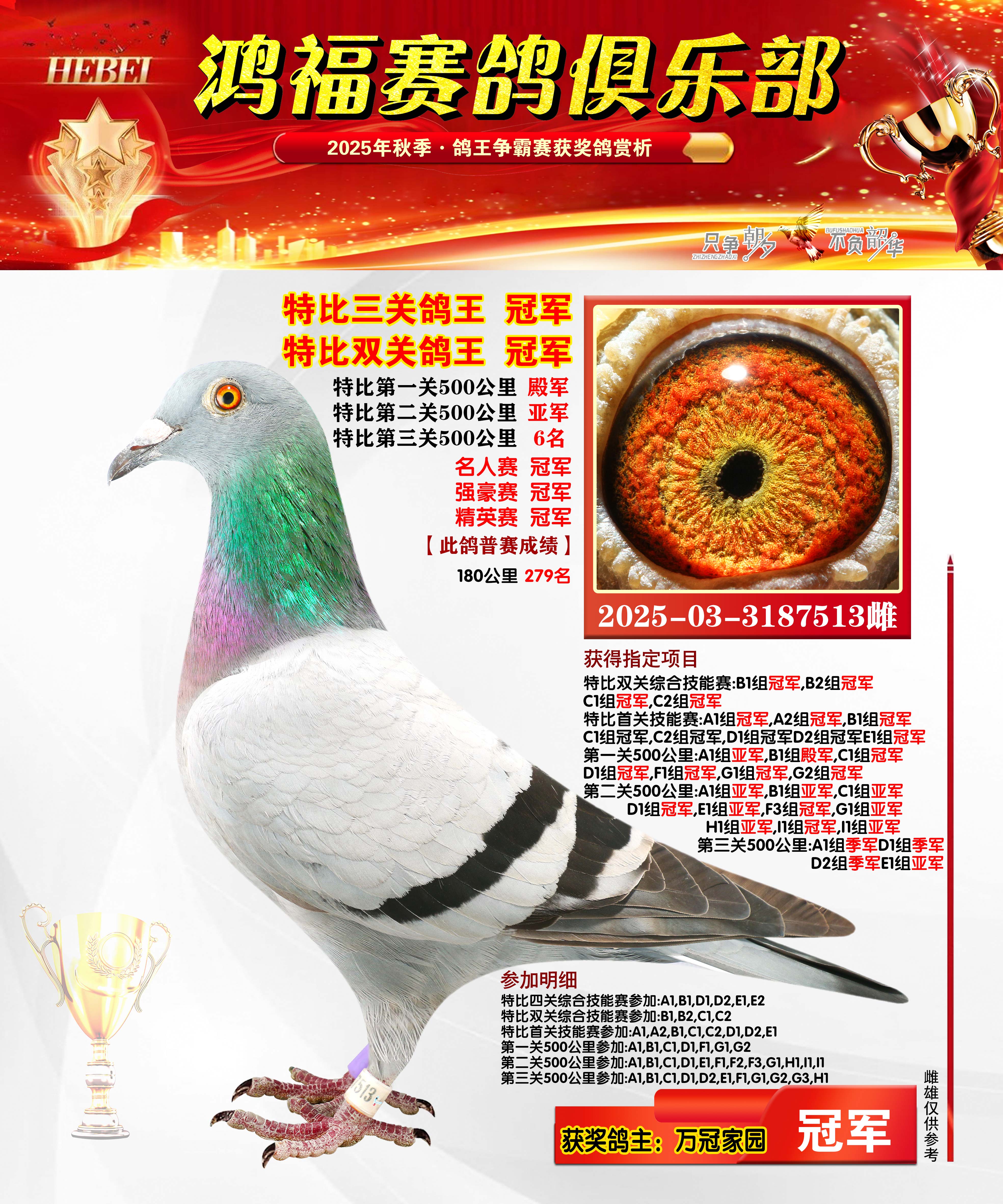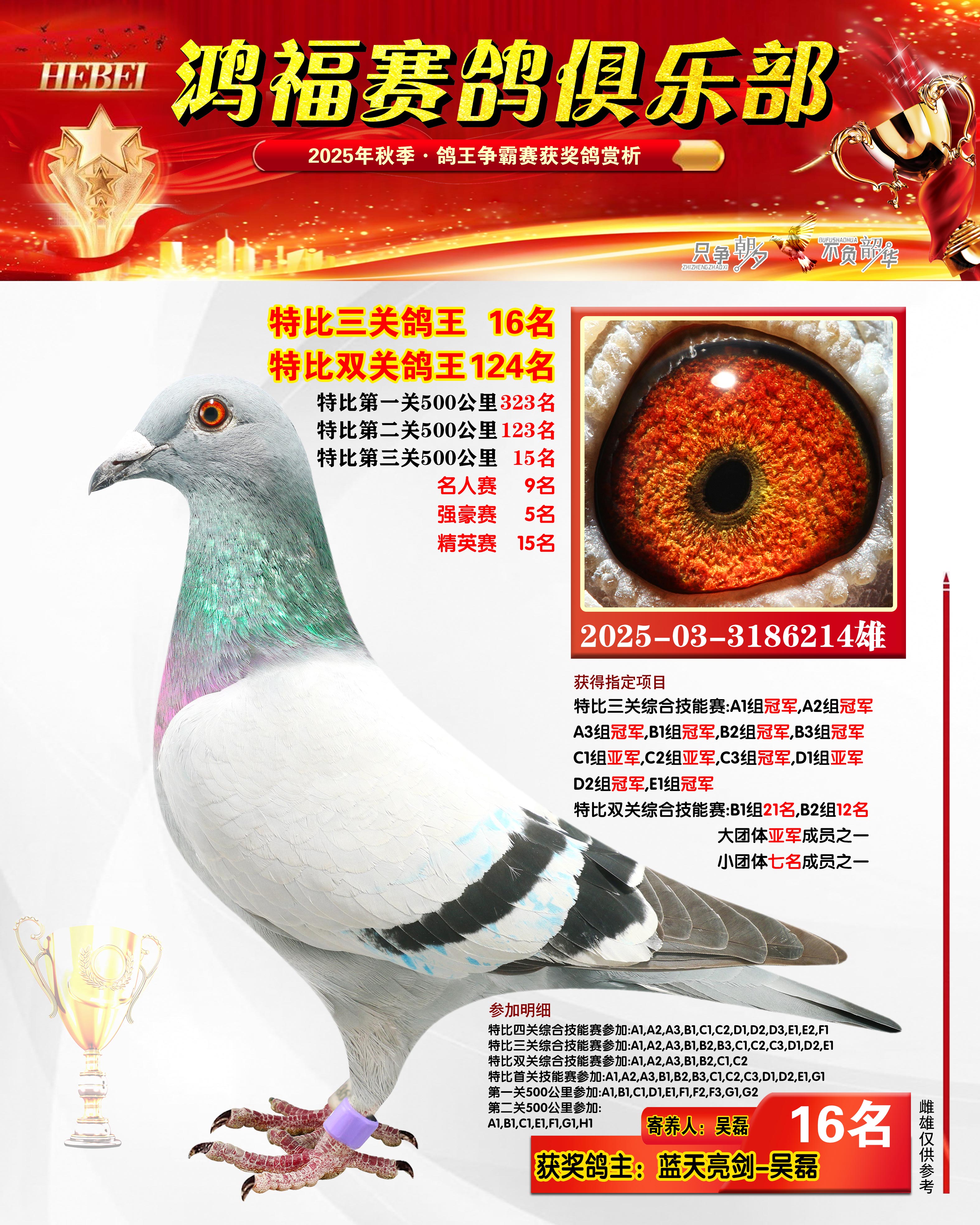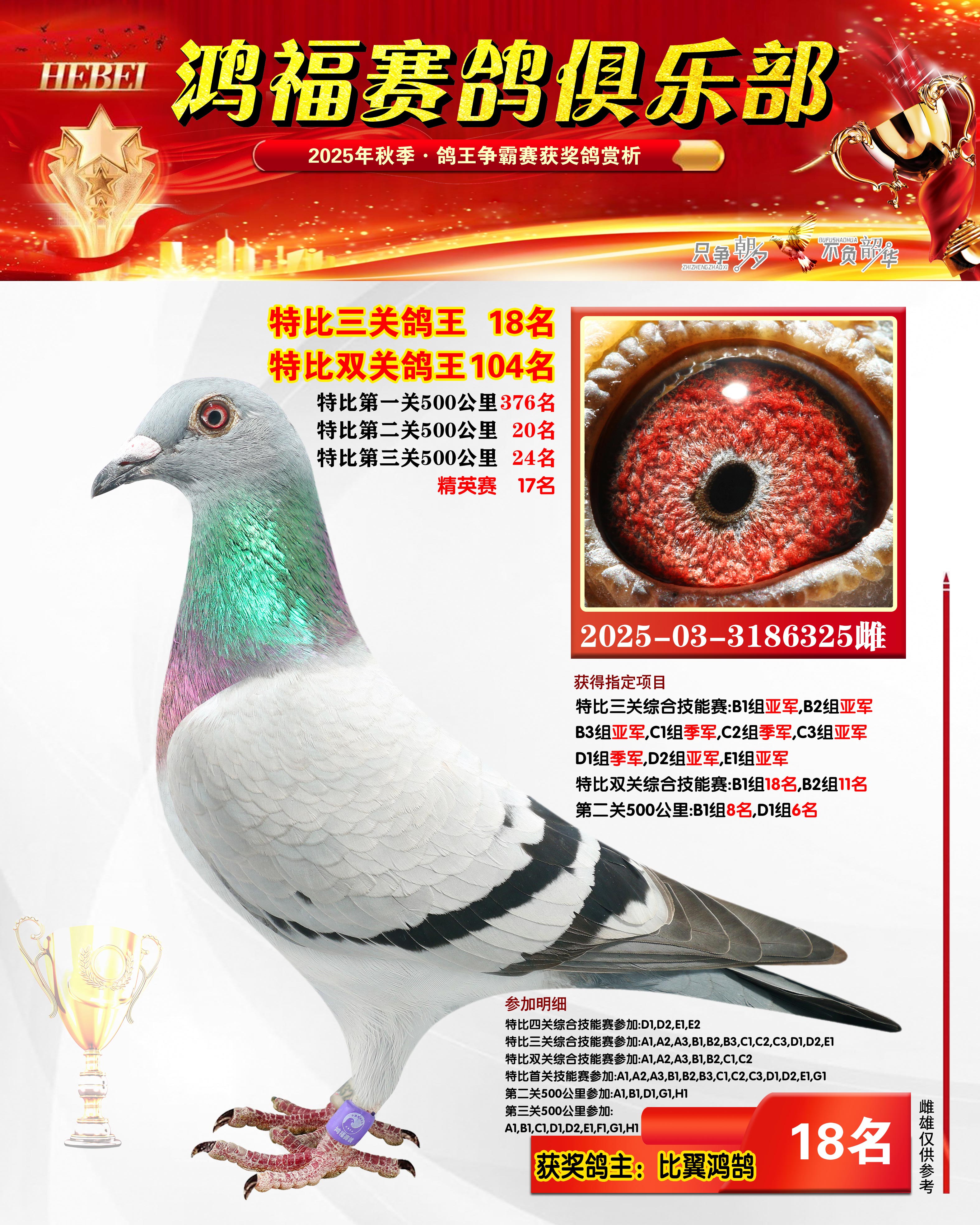 • 2025年秋季获奖鸽21-50名 (2025/11/10 9:46:52)