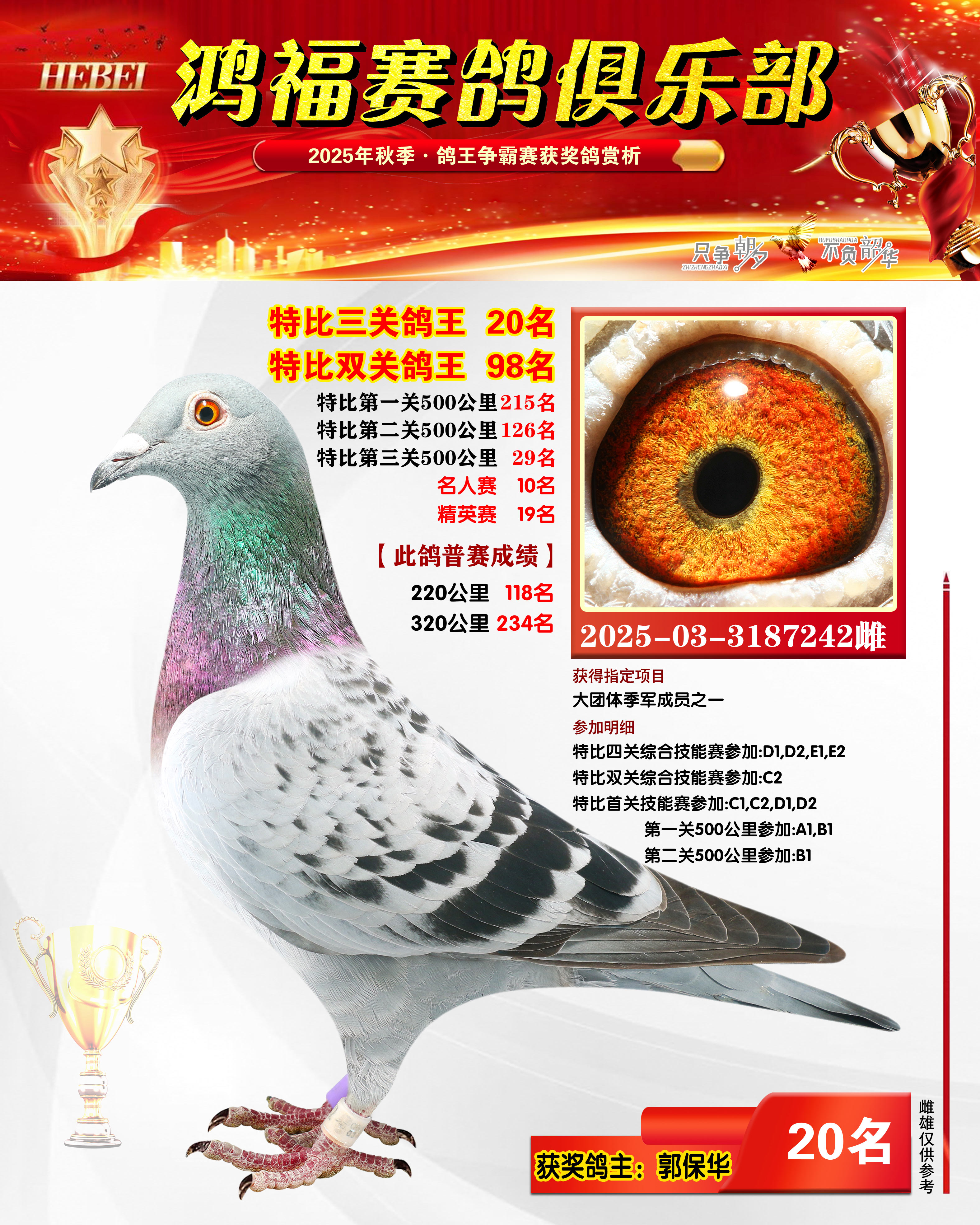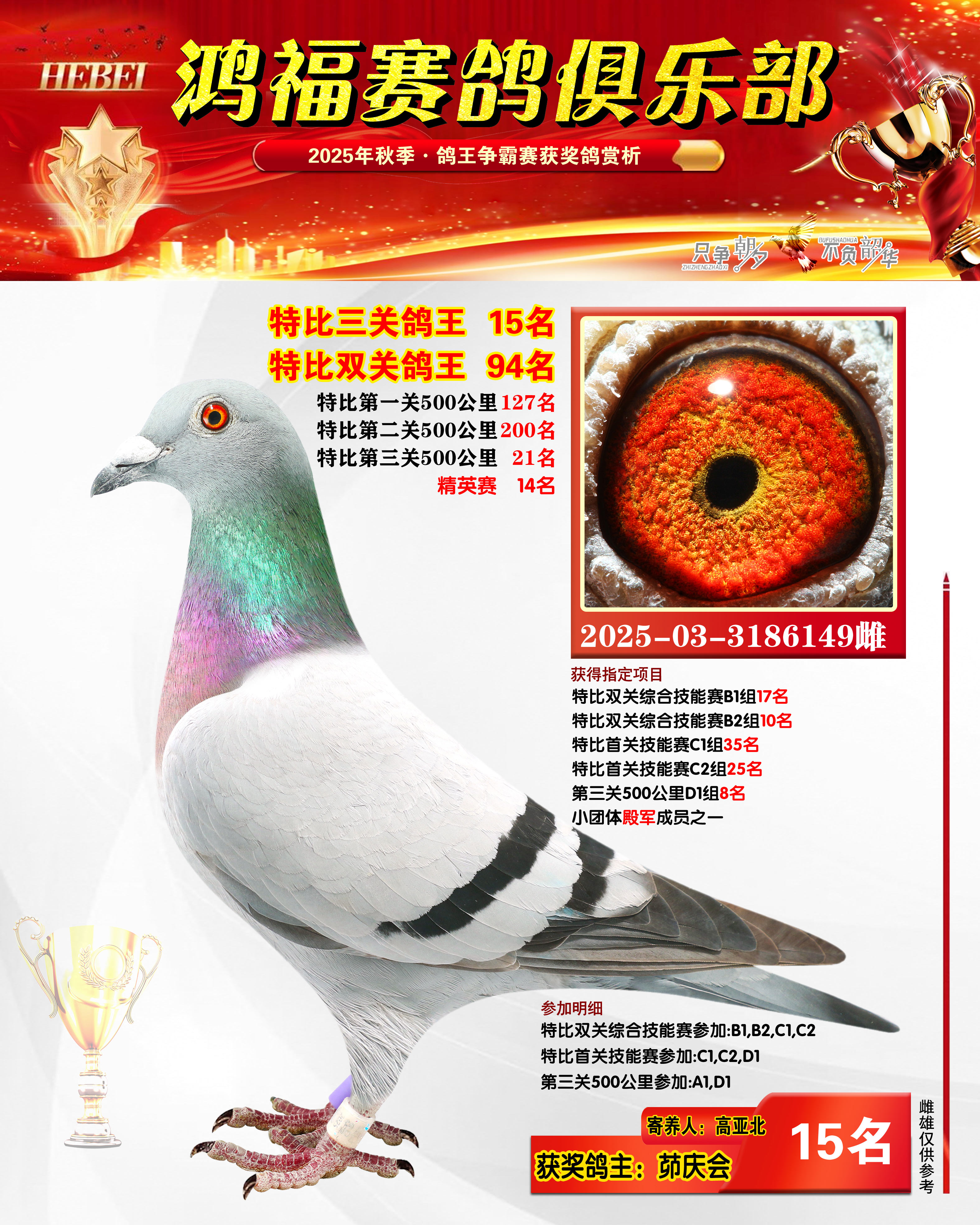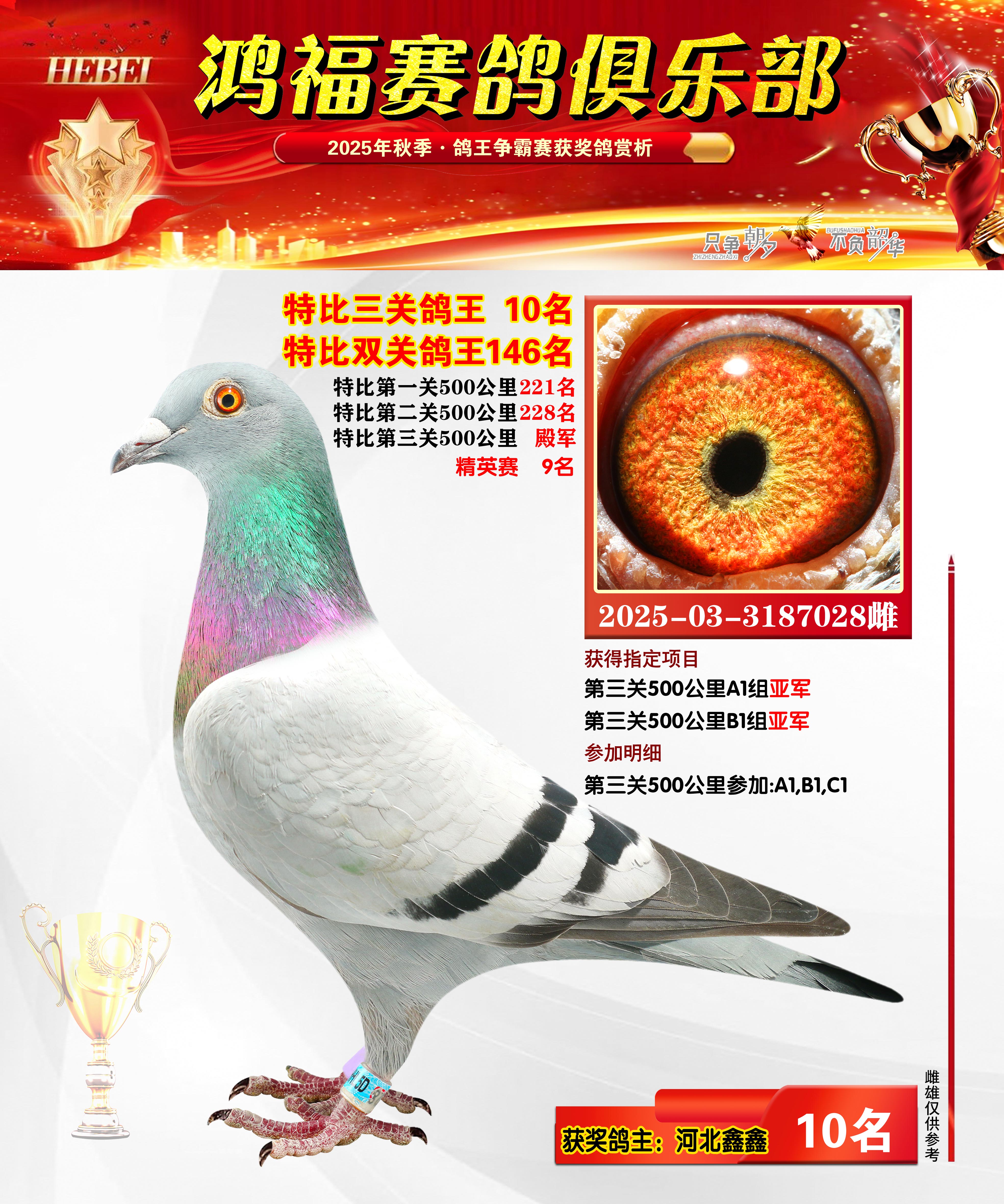 • 2025年秋季获奖鸽21-50名 (2025/11/10 9:46:52)