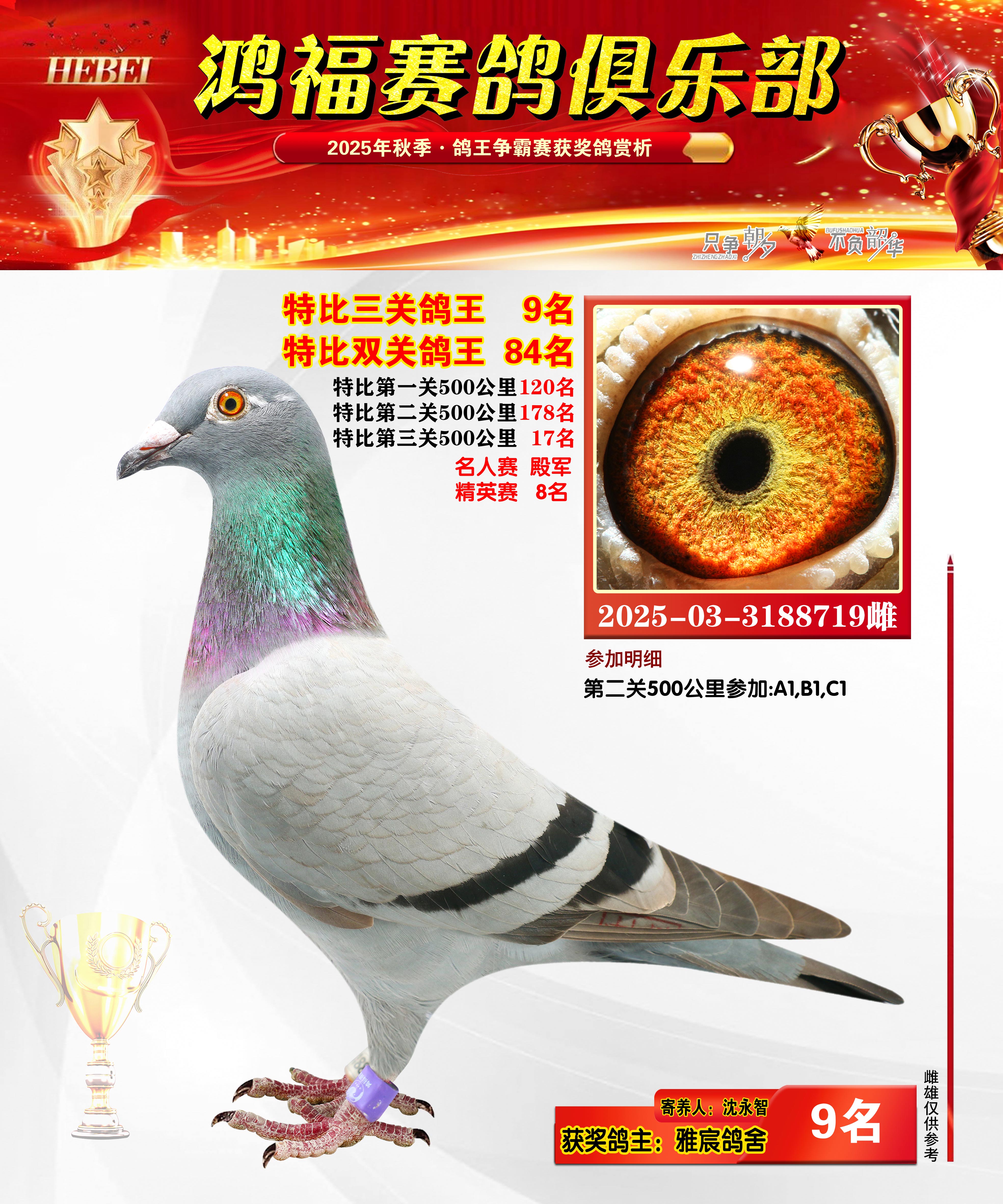 • 2025年秋季获奖鸽51-88名 (2025/11/10 10:05:27)
