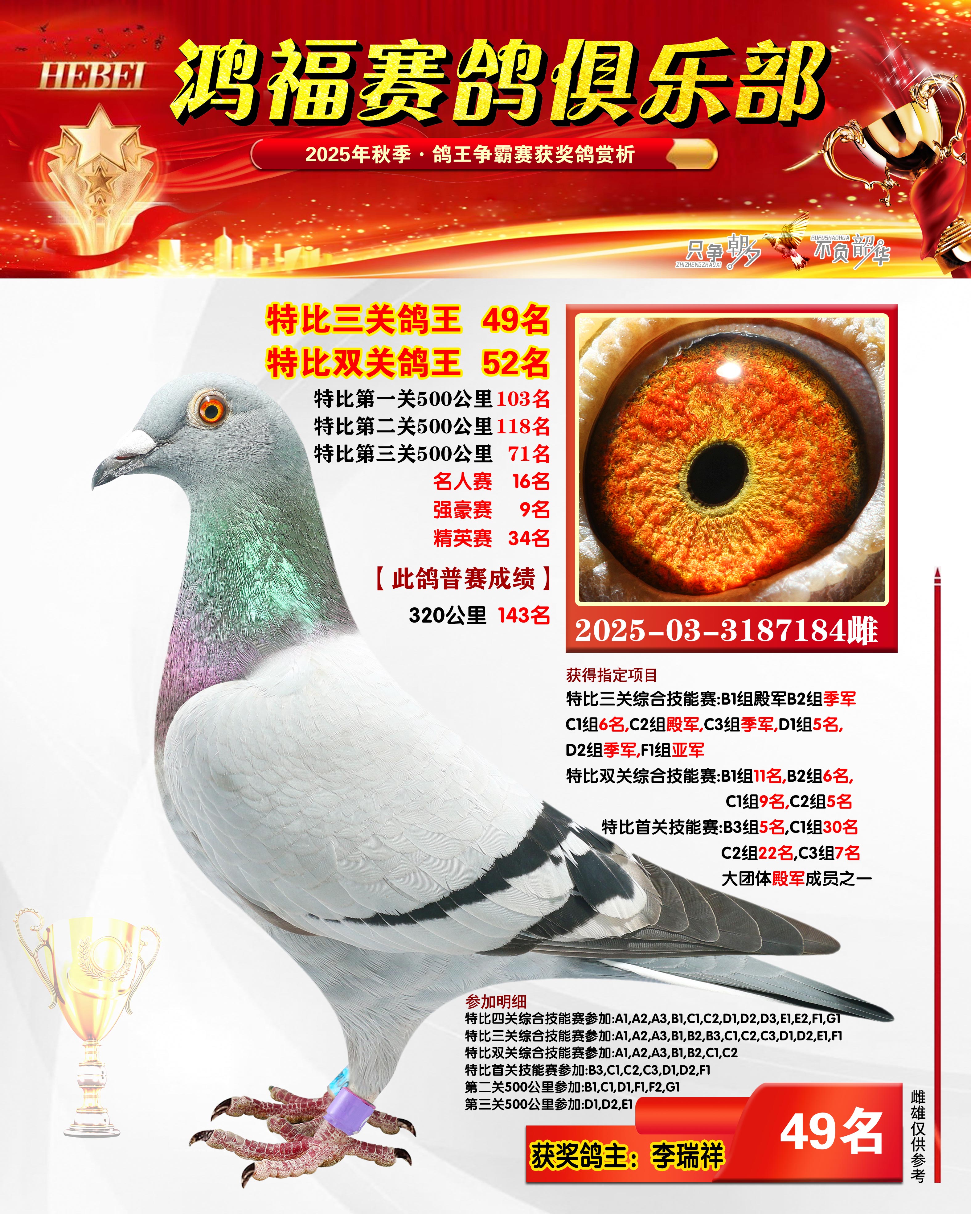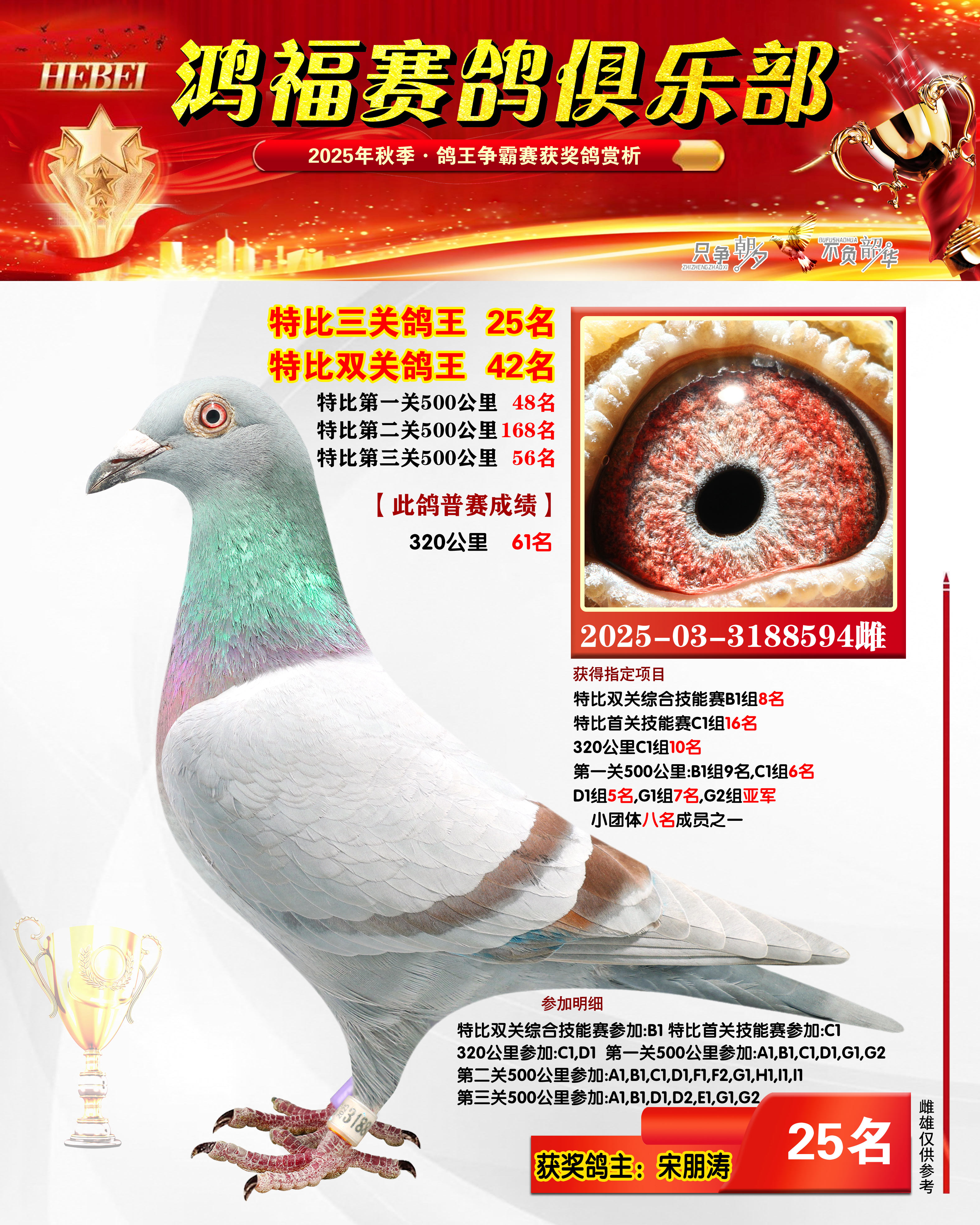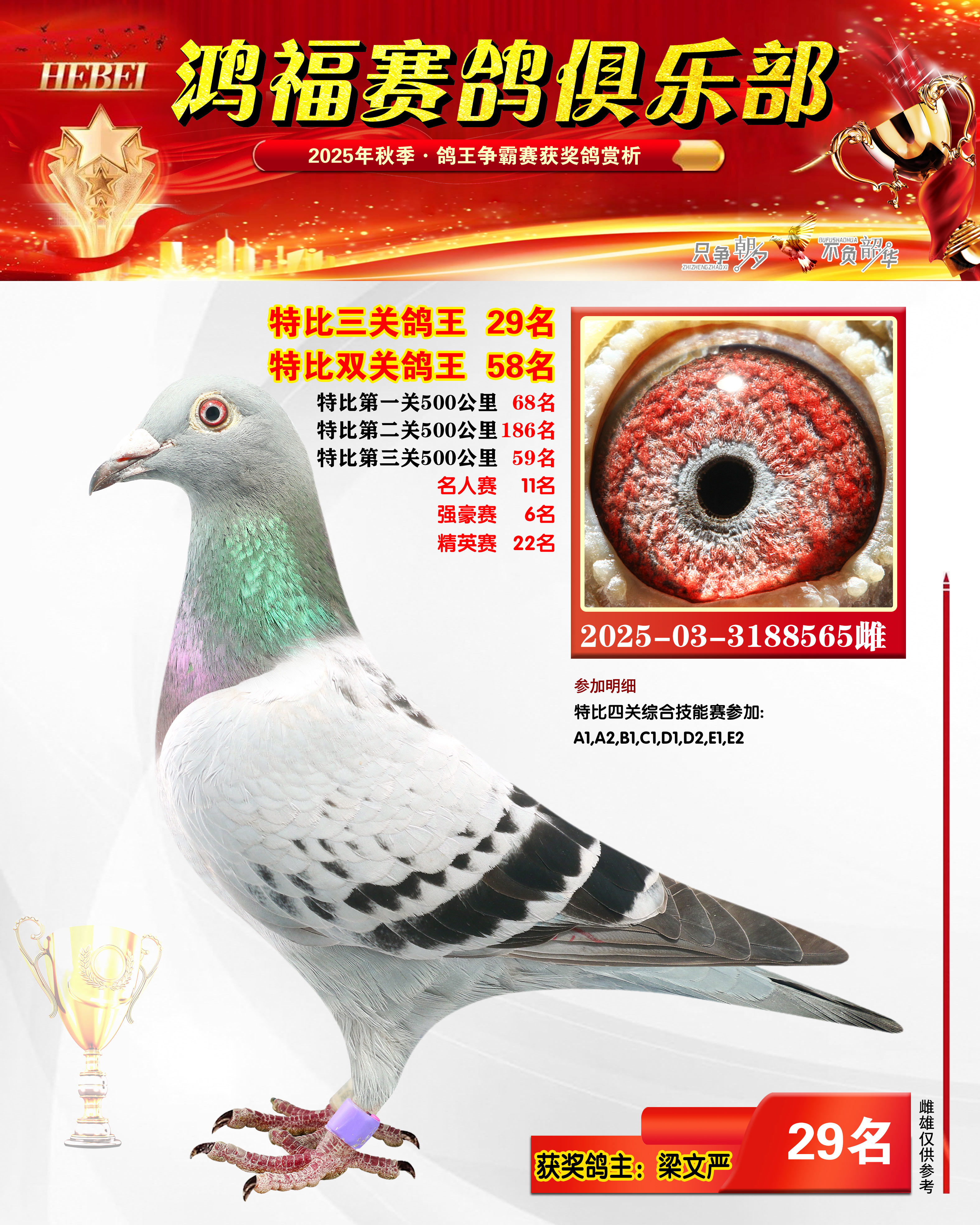 2025年秋季获奖鸽21-50名