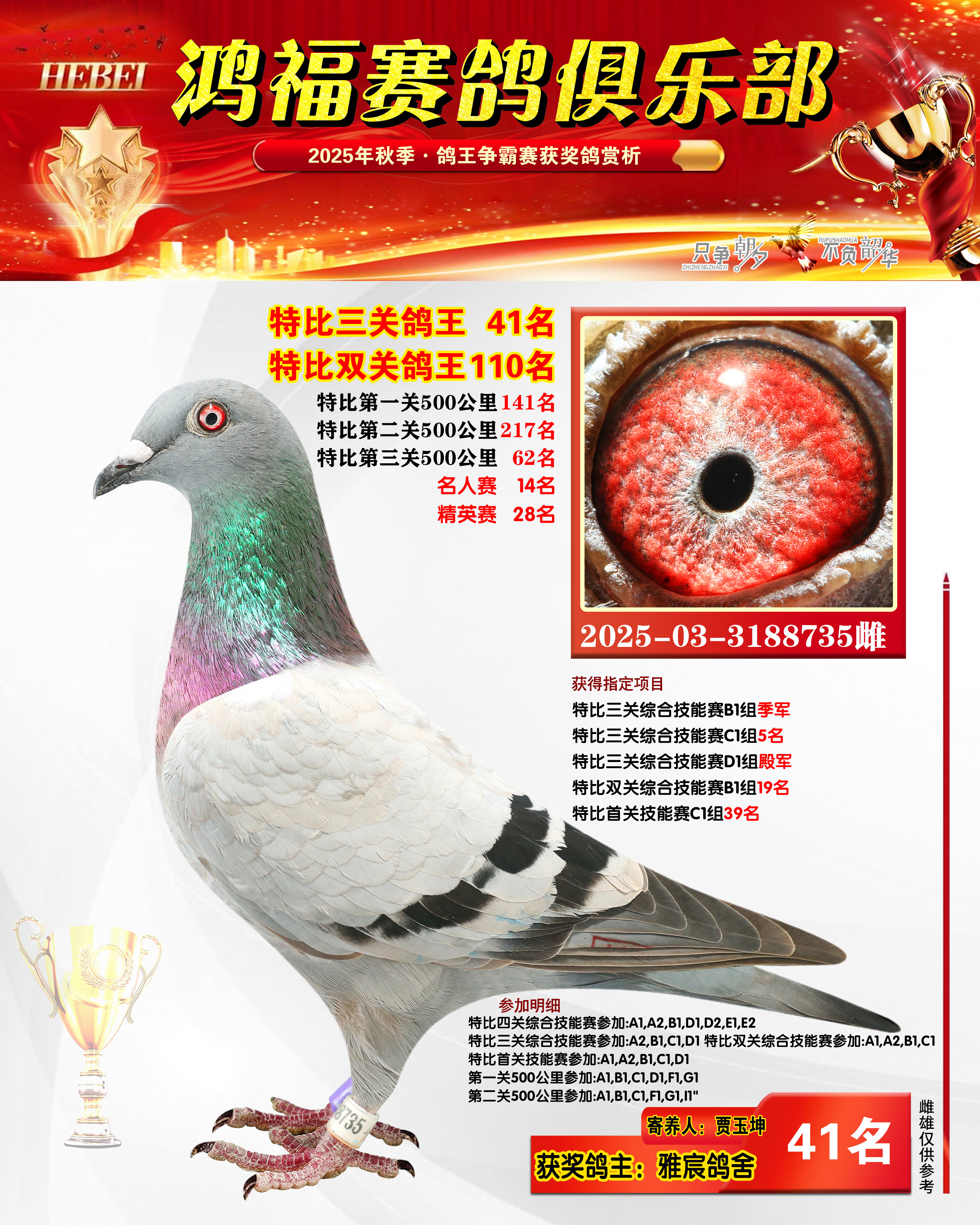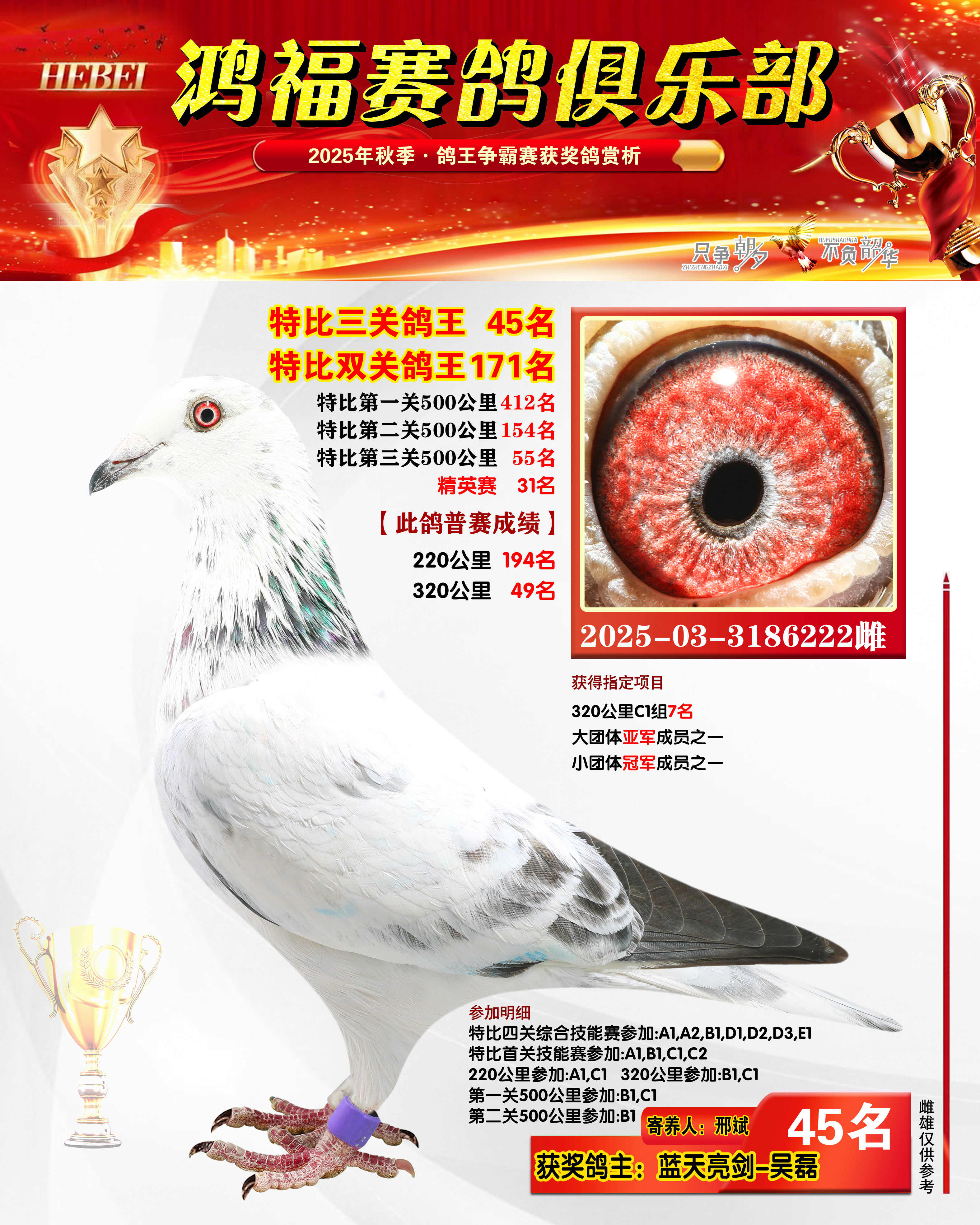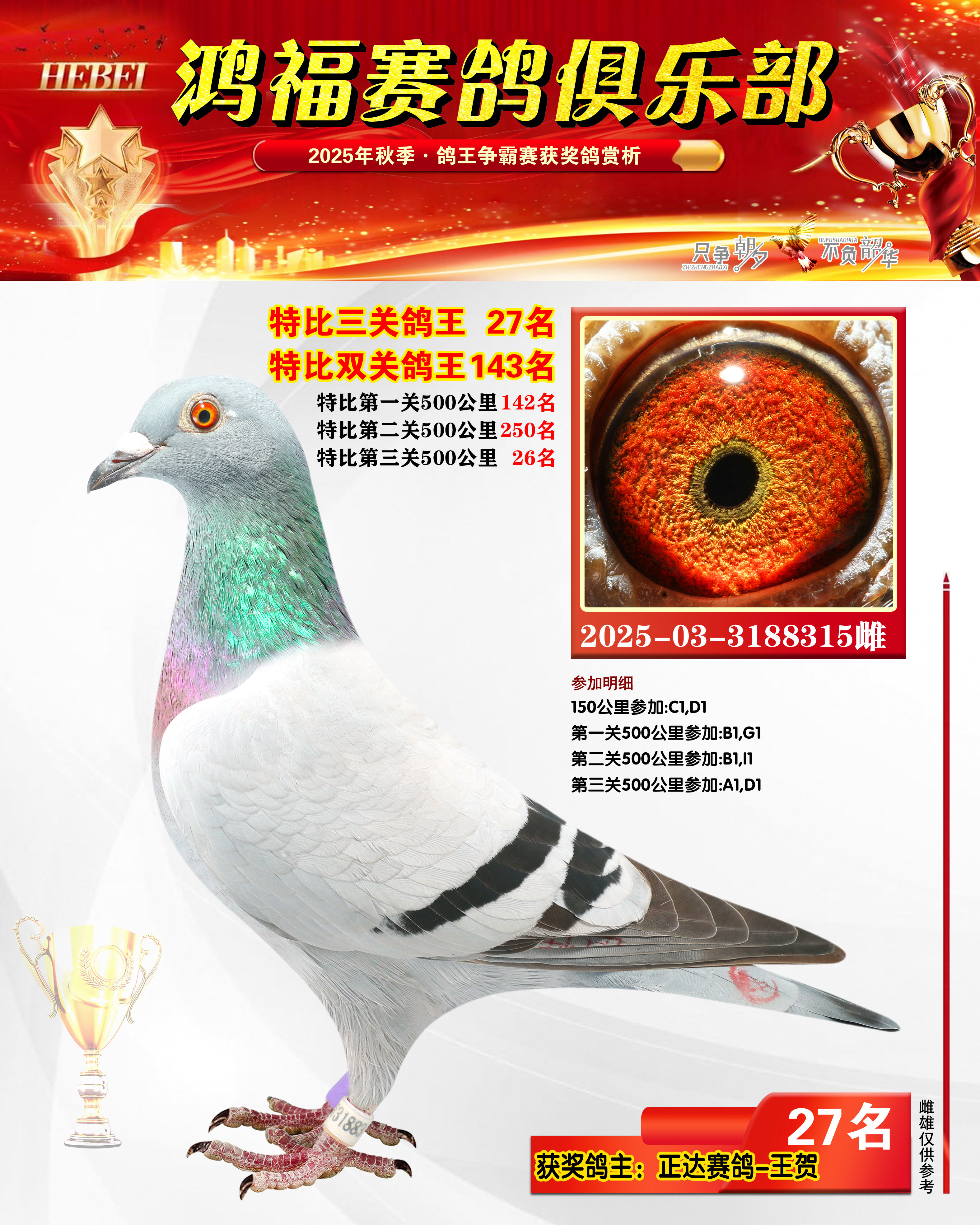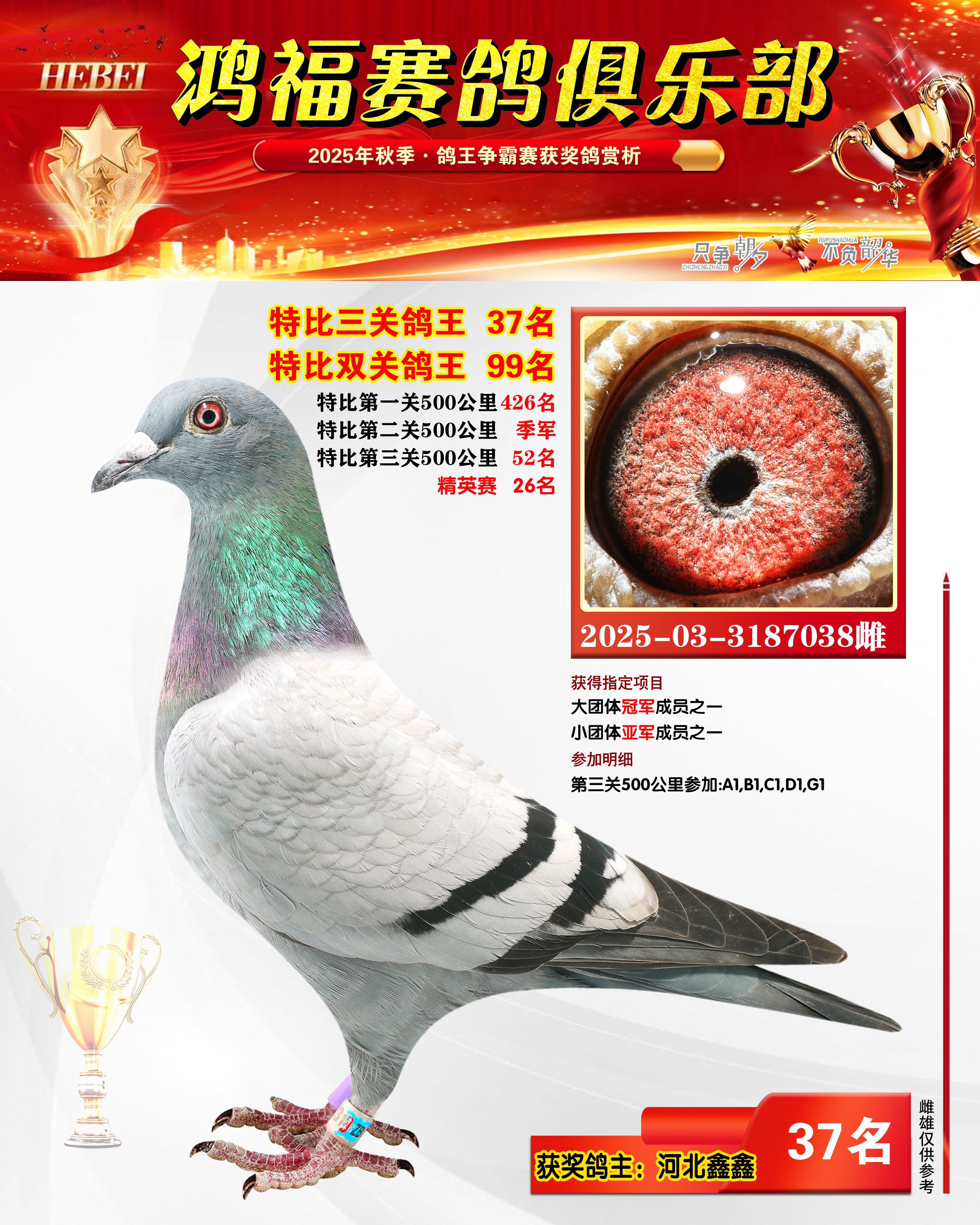 2025年秋季获奖鸽21-50名