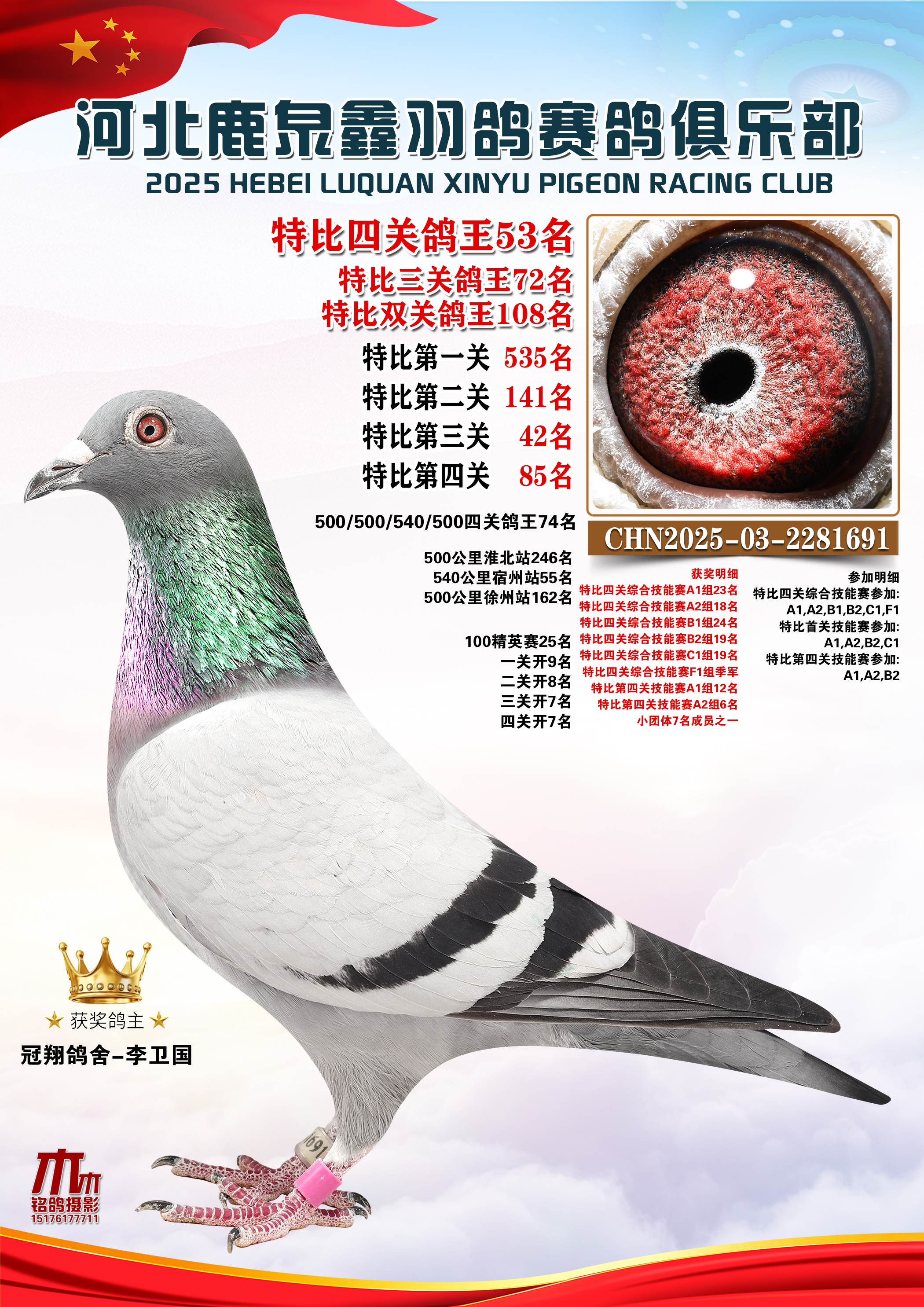 • 25秋河北鹿泉鑫羽鸽俱乐部特比鸽王151-200名 (2025/12/1 8:13:09)