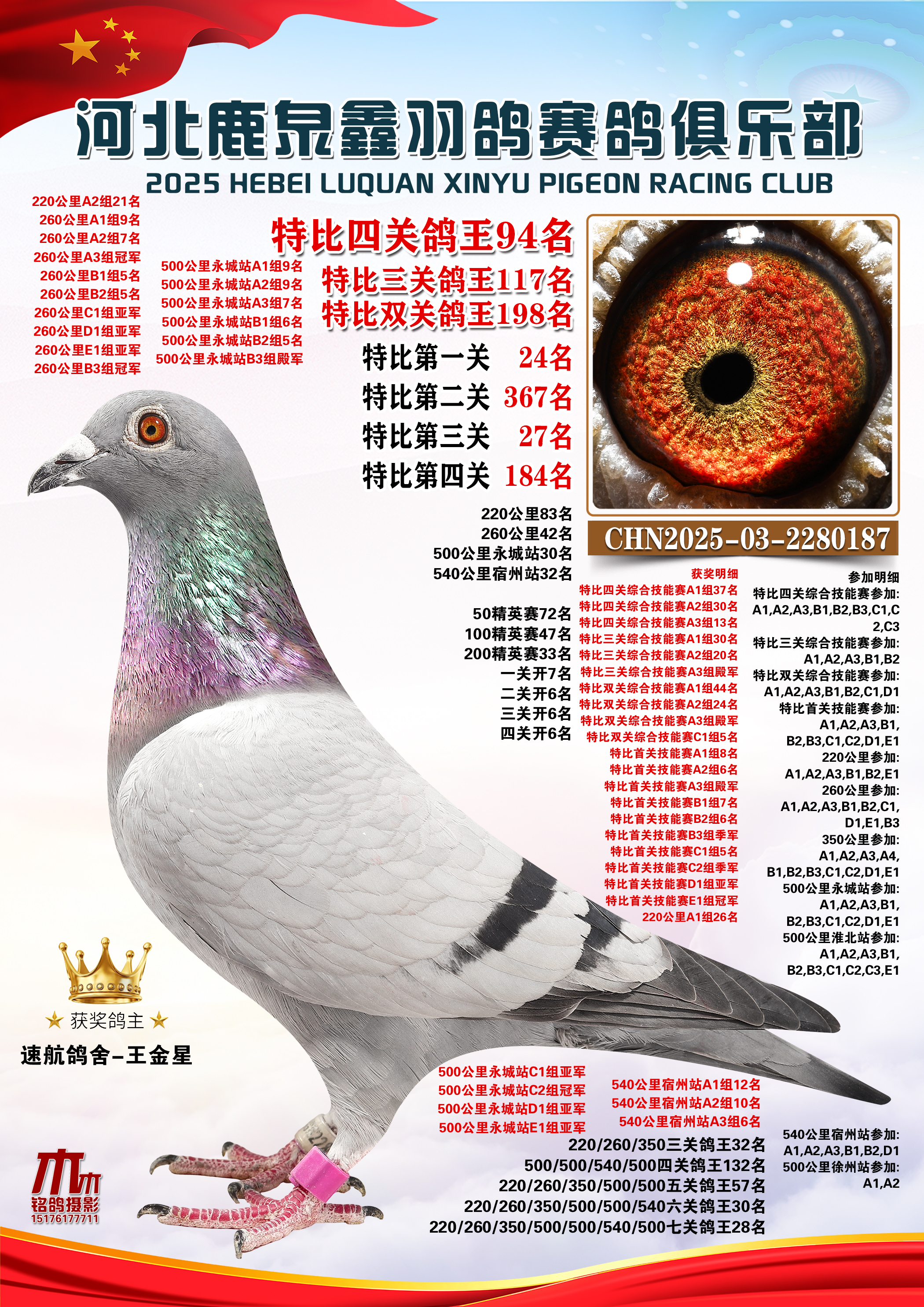 • 25秋河北鹿泉鑫羽鸽俱乐部特比鸽王1-50名 (2025/11/30 23:38:02)